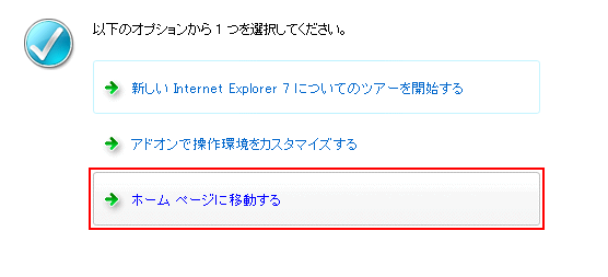■ 「Internet Explorer 7」の画面が表示されましたら、インストールは完了です。