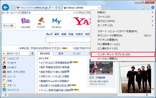 ■ 表示されたメニューの「インターネット オプション(O)」をクリックします。